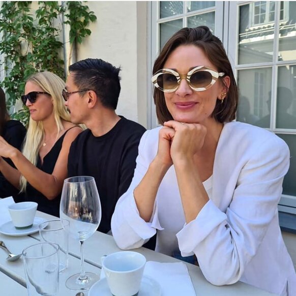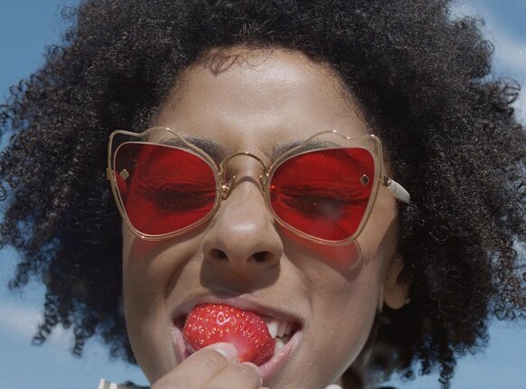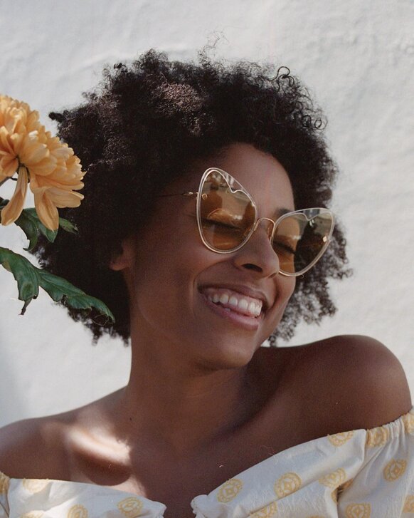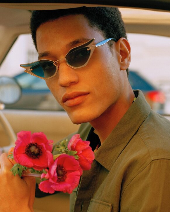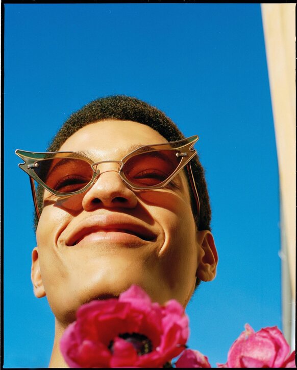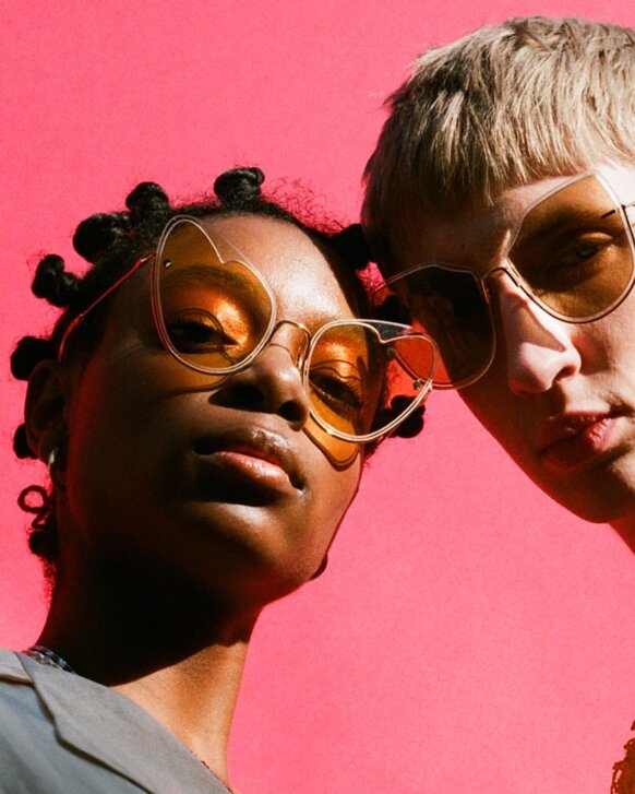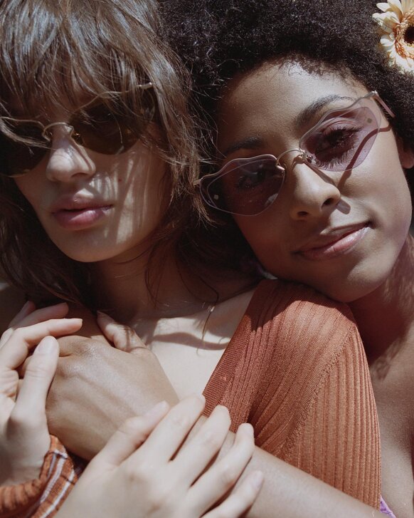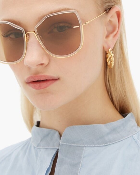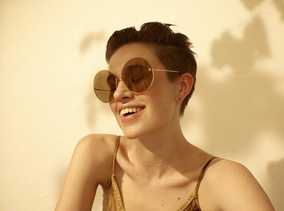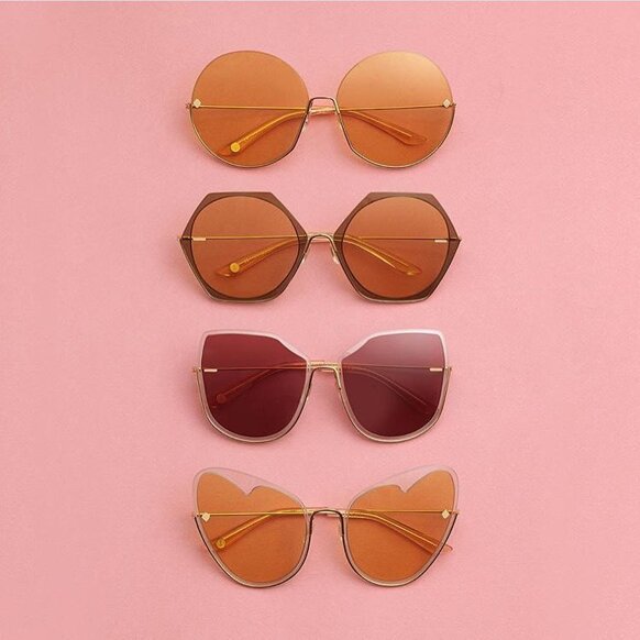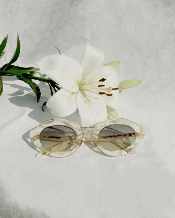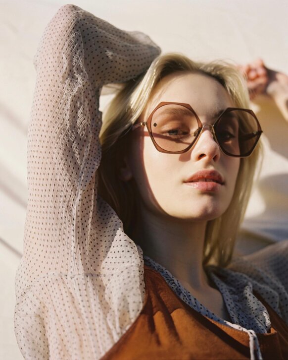 I colori sono scelti con cura per riflettere l'atmosfera MØY; fiammeggiante, caldo e invitante. Realizzati con la combinazione unica di metallo placcato in oro 12k, lenti in nylon e acetato fine, cerca di creare leggerezza ed eleganza.
